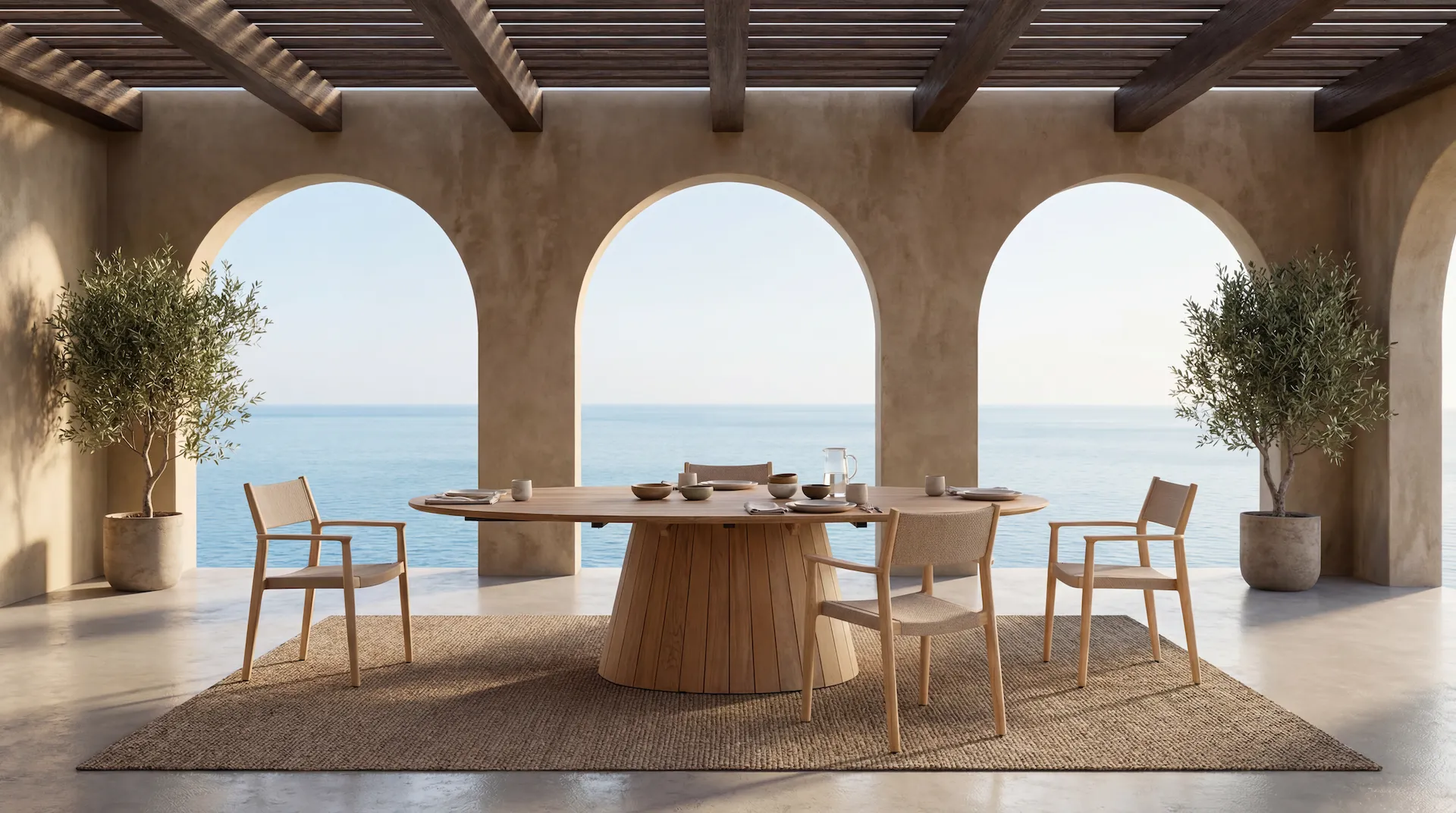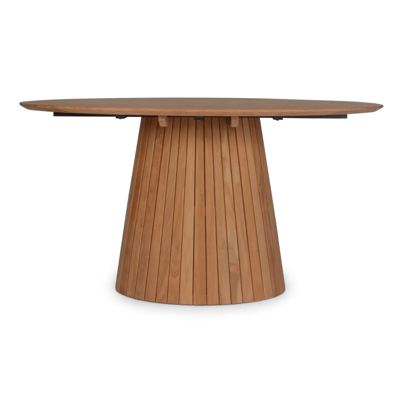 Levanto features fully teak tables in oval, round, and bar options. Designed for social gatherings, the collection showcases beautiful slatted bases and tops, delivering both elegance and functionality.