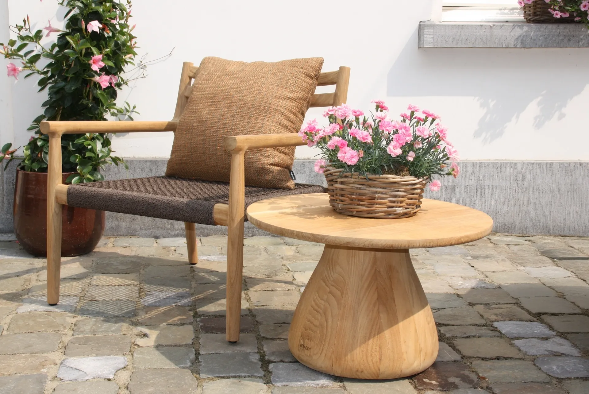 Download catalogueThe Florence collection features a range of chairs with teak bases and dark rope seating. This sleek design is complemented by a variety of seating options, including bar stools and armchairs, each crafted to enhance outdoor comfort. Florence’s warm materials and clean lines evoke a summery atmosphere, making it ideal for terraces and patios.