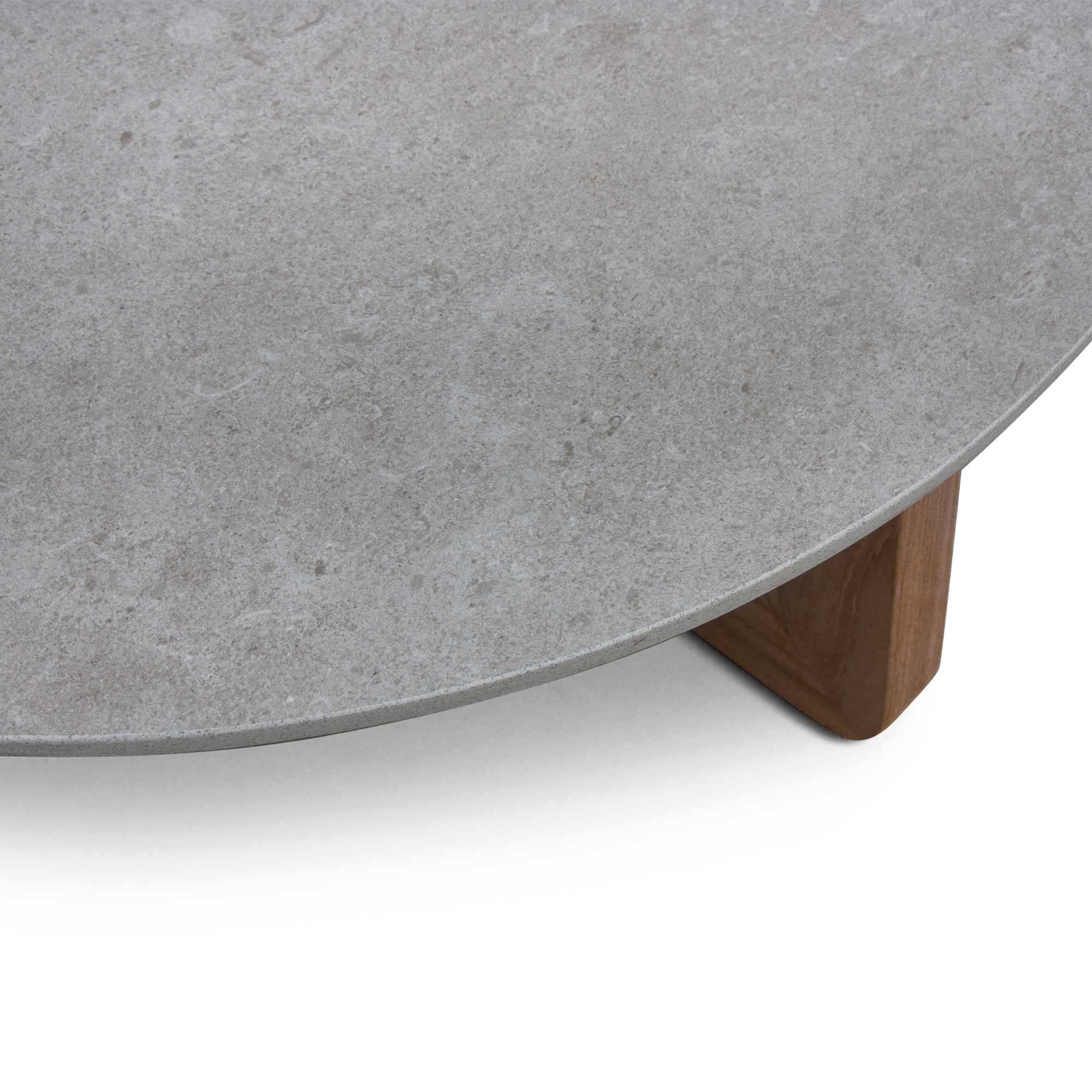 The Atrani dining table features a premium teak frame with the option of a ceramic top. Its sleek design and sturdy construction make it ideal for outdoor dining. The teak version stands out with its unique leaf-patterned top, adding a natural and elegant touch to the design.
