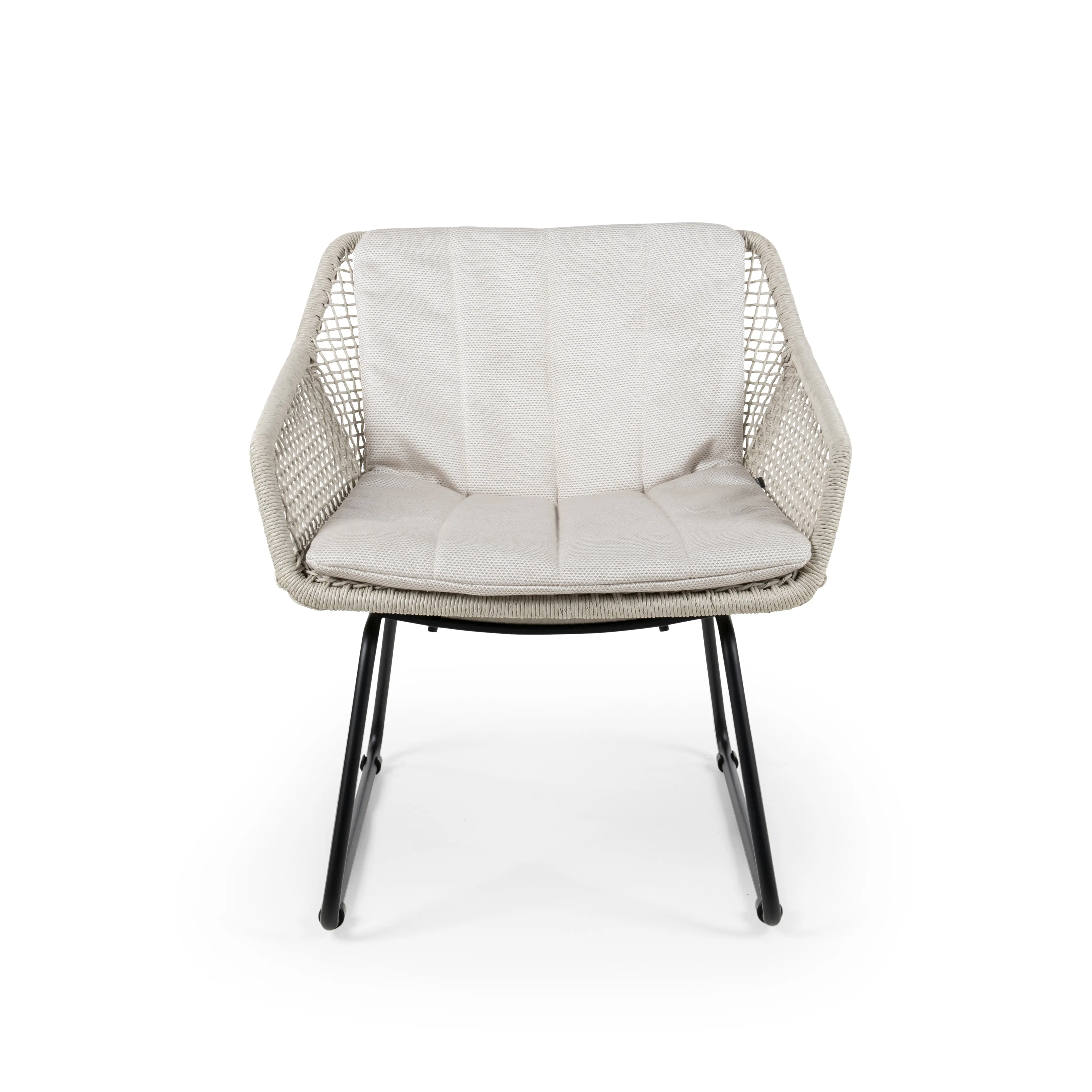 The Esta lounge chair features sleek aluminum frames in black, linen, or white. Its modern design and comfortable wicker seating make it perfect for outdoor relaxation. Durable and low-maintenance, it’s ideal for any contemporary setting.
