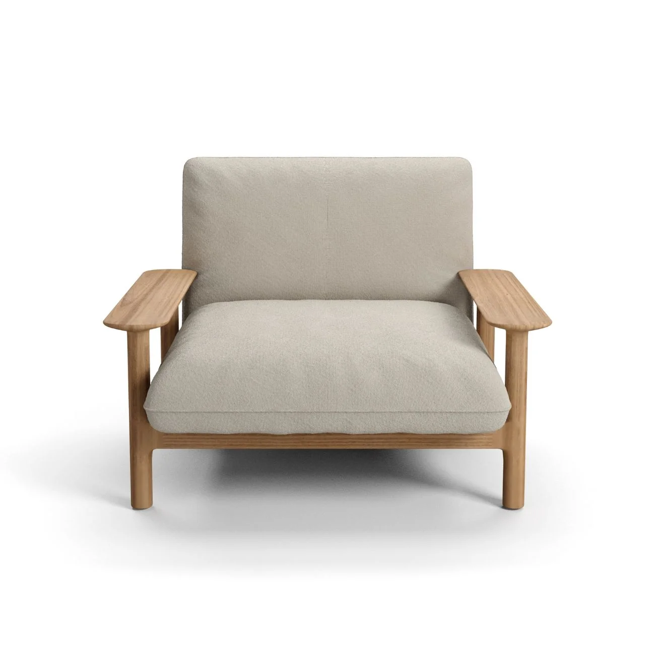 The Maddalena 1-seater lounge chair is available in full teak or with an aluminum base and teak armrests. Its sleek design and comfortable seating make it an ideal choice for both style and relaxation in outdoor spaces. Perfect for a modern lounge setup.