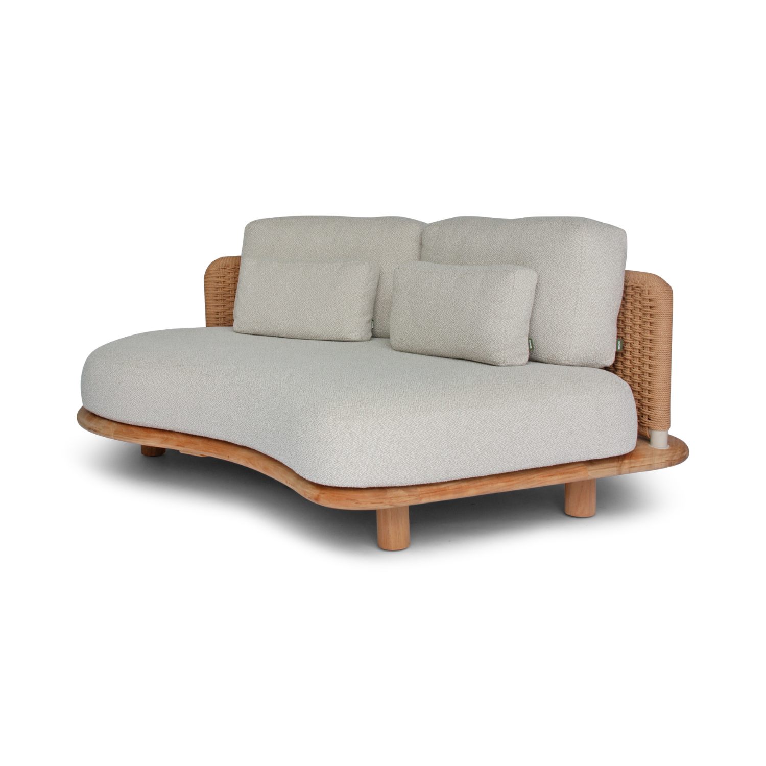 The Orosei lounge combines a solid teak base with refined top weaving, delivering both comfort and contemporary outdoor style. Its modular design is available in 2-seat long, right, middle and left elements, allowing for flexible configurations to suit any space. Warm materials and soft cushions create a relaxed, summery atmosphere, perfect for terraces, patios or stylish outdoor living areas.